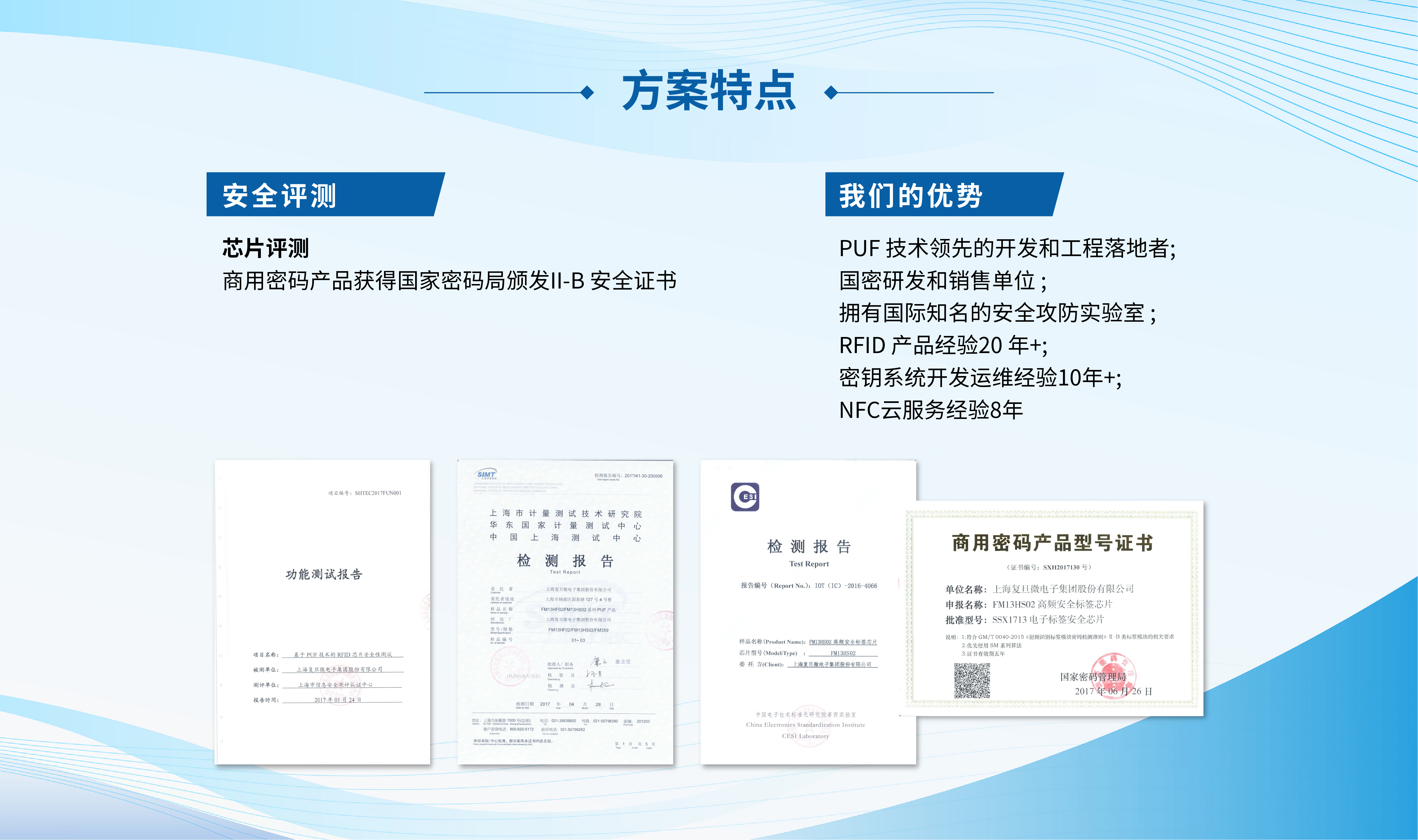 為更好的賦能合作伙伴,讓品牌企業(yè)使用上PUF高安全NFC芯片(芯片指紋技術(shù)),復(fù)旦微提供基于PUF NFC芯片的防偽溯源解決方案服務(wù),此方案簡稱為UIVS服務(wù),UIVS系統(tǒng)可與企業(yè)現(xiàn)有應(yīng)用系統(tǒng)快速對接,最 快一周實(shí)施上線。同時,復(fù)旦微提供基于PUF芯片的一整套“真品無雙”防偽溯源系統(tǒng)。