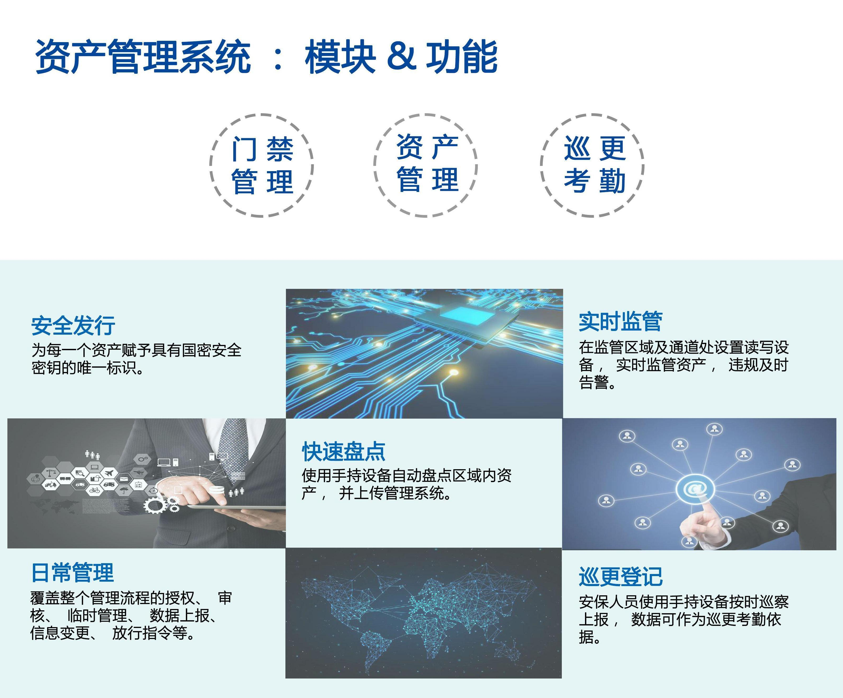 復旦微電子推出“超高頻國標+國密的RFID方案”,通過人防和技防同步推進,對重要物資和涉密資產進行有效監管,防止重要資產流失及重要信息泄密,實現對用戶資產的全生命周期信息化管理。此安全資產管理可實現:統一管理授權;涉密與非涉密分級;安全通道監管;維保通勤管理;統一資產盤點;外來資產登記;資產車輛管理;重要資產管理等。