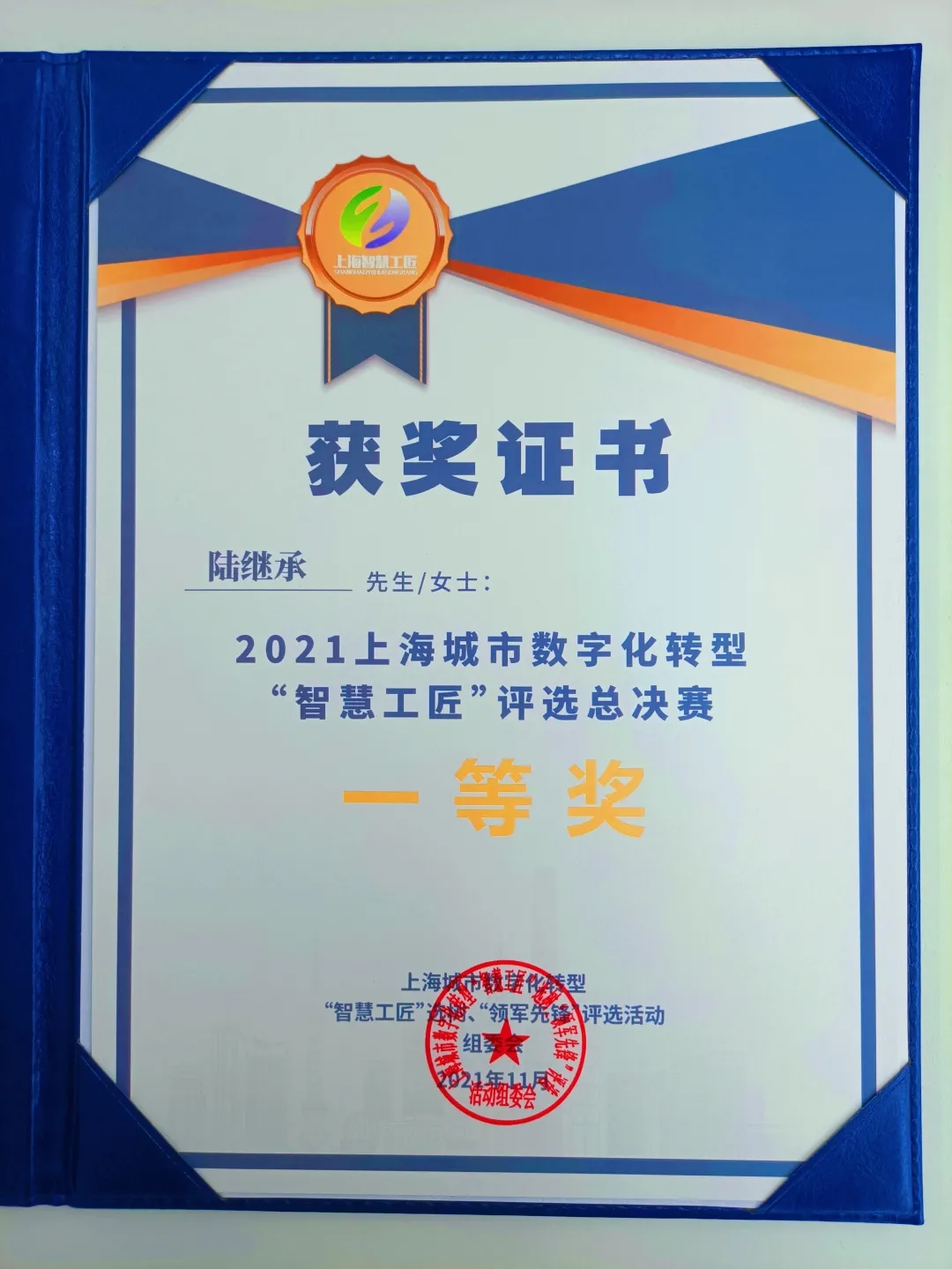 陸繼承榮獲“智慧工匠”總決賽一等獎